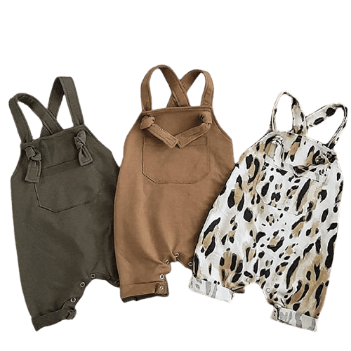 unisex kids cute overall pants fall features straps design, front pocket and straps on shoulder adjusting. Total three colors in a sets