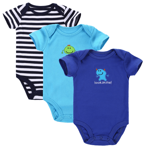 3 sets of boys romper, the bottom design on crotch, easy for changing napkin. front with cute animal printing.